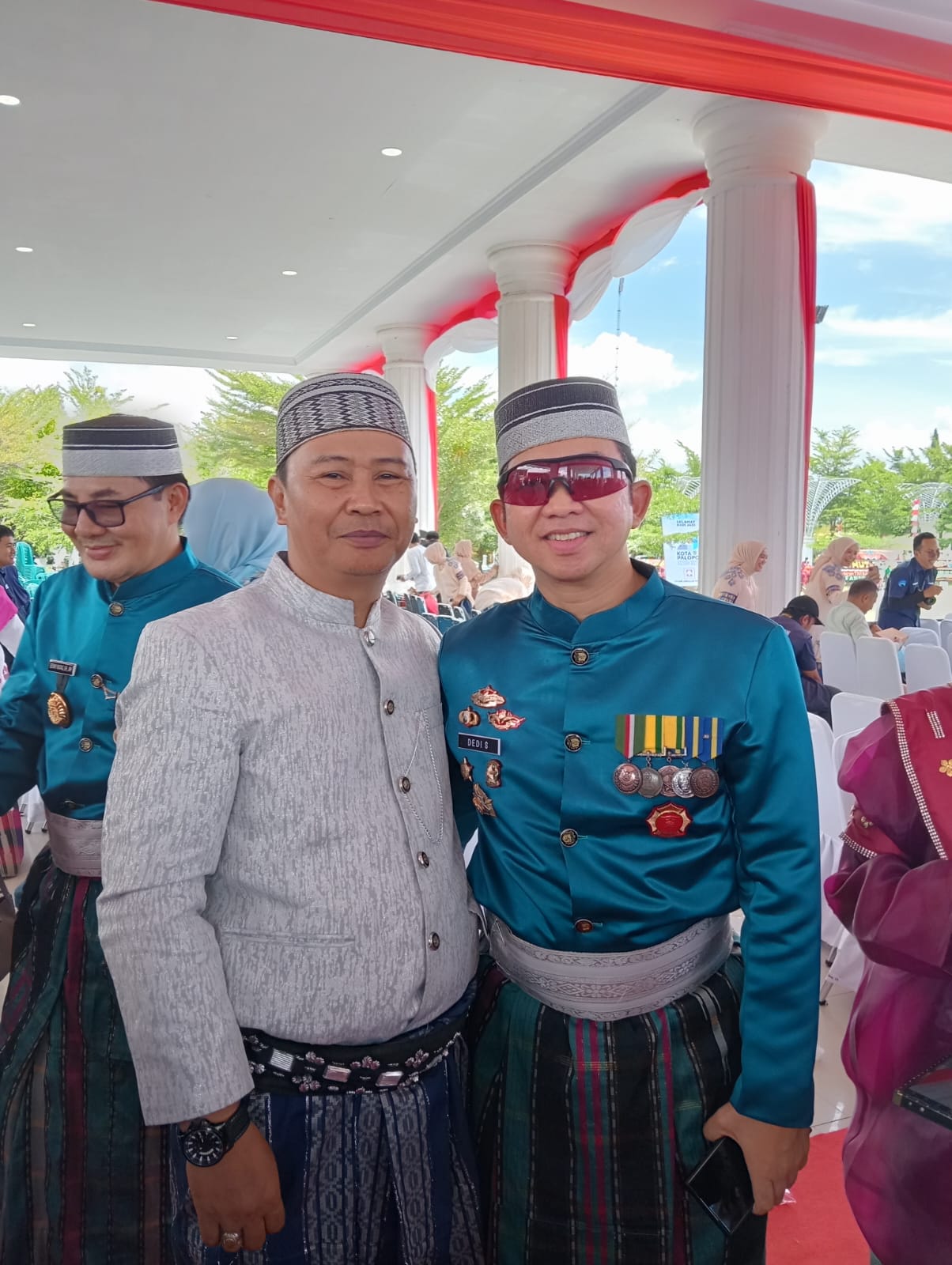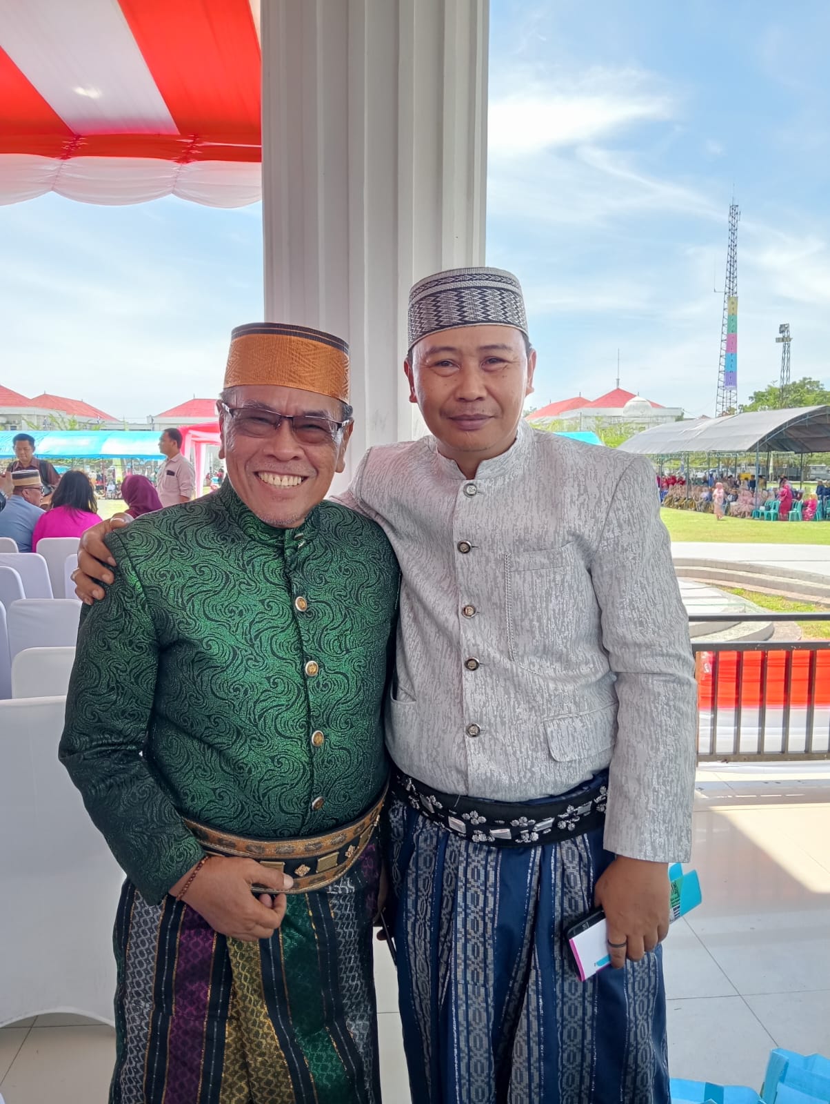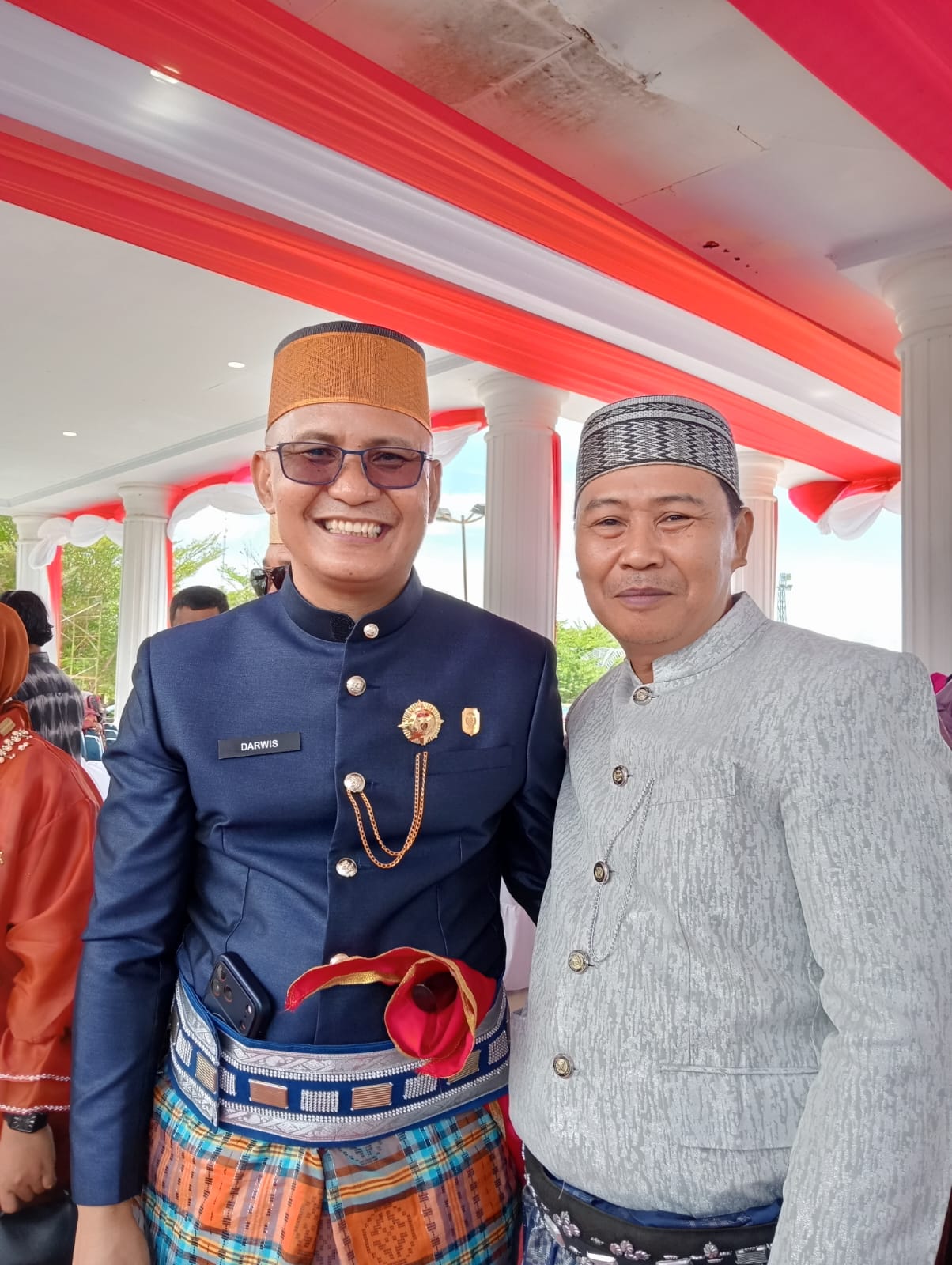 (Ketua SMSI Kota Palopo Dedy Ariyanto foto bersama Ketua DPRD Palopo Darwis usai mengikuti peringatan Hari Jadi Kota Palopo Ke-24 di Tribun Lapangan Pancasila. Jumat 10 April 2026. Foto : Humas SMSI Palopo)